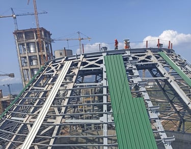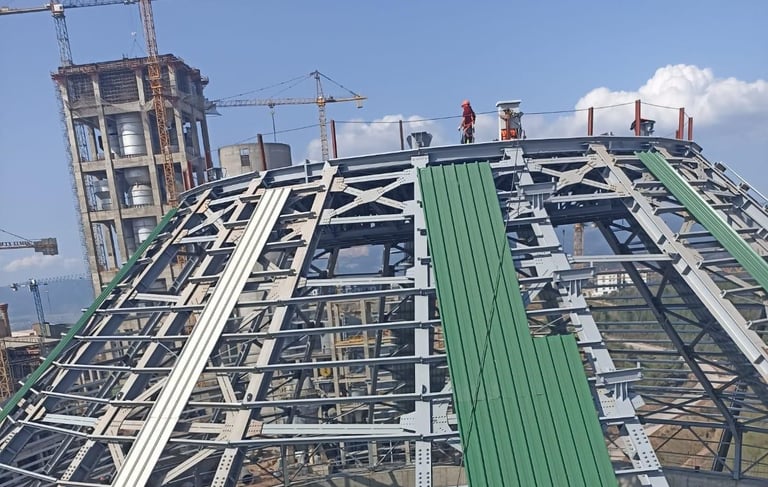 Fabrikalarda çatıların çelik malzemelerle yapılması büyük bir önem taşımaktadır. Çelik malzemeler, dayanıklılığı ve uzun ömürlü olmasıyla bilinir ve fabrikalar için ideal bir seçimdir. Bu malzemeler, ağır yükleri taşıma kabiliyetine sahip olduğu için fabrika çatılarının sağlam olmasını sağlar. Montaj kalitemiz ve işçi güvenliğine verdiğimiz önemle, yüksek mesafelerde bile meydan okuyarak her türlü çelik montaj işini güvenle gerçekleştirebiliyoruz. İş güvenliği standartlarına uygun olarak gerçekleştirdiğimiz çelik montajlarıyla, fabrikaların hem dayanıklı çatılara sahip olmasını sağlarız hem de çalışanların ve ürünlerinizin güvenliğini sağlarız.